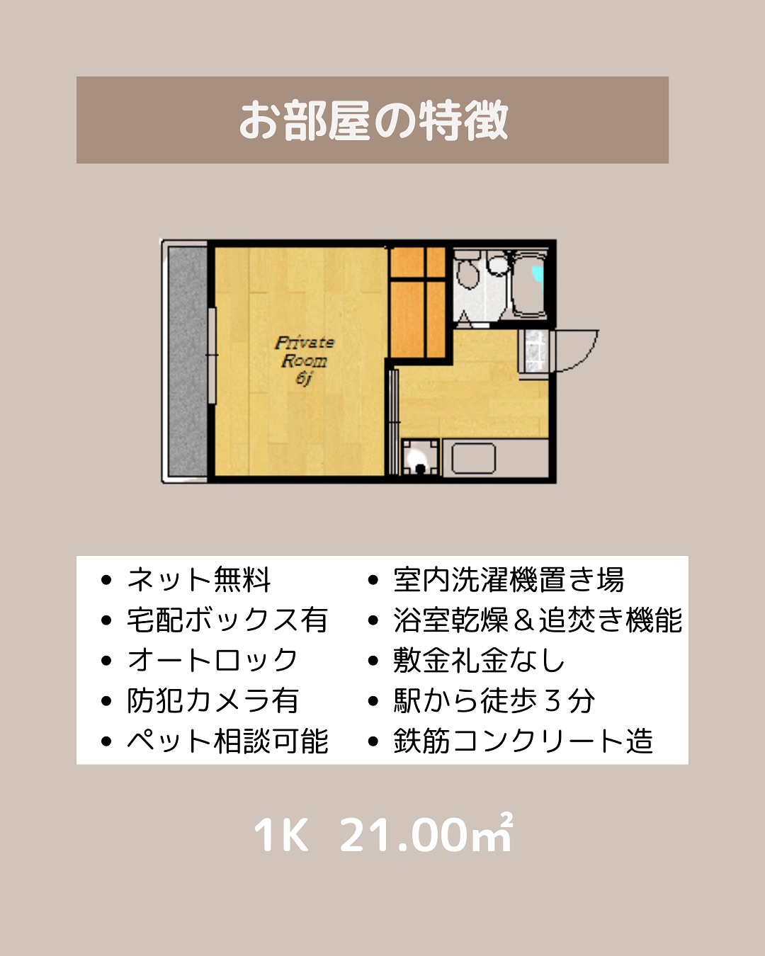 専有面積:21.00㎡