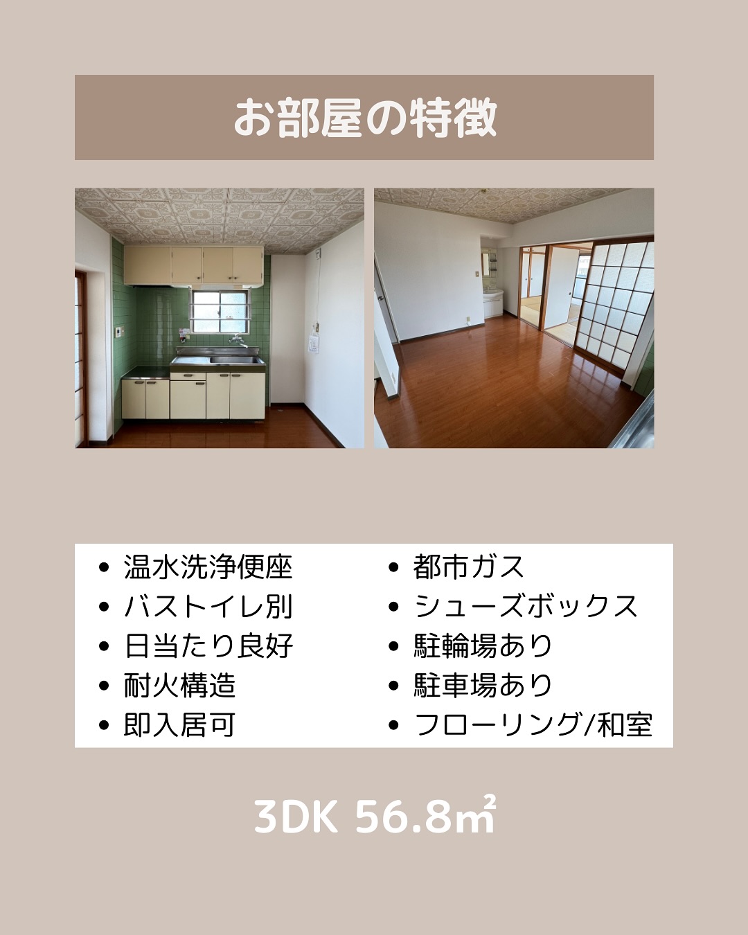 #鹿児島市賃貸 #3DK #ファミリー向け #駐車場あり #リフォーム済 #日当たり良好 #都市ガス #最上階 #室内洗濯機置場 #和室あり